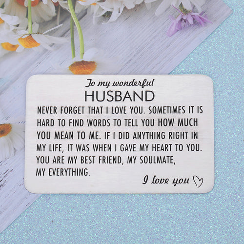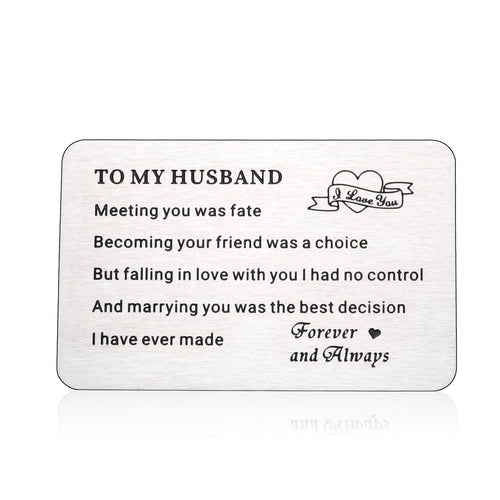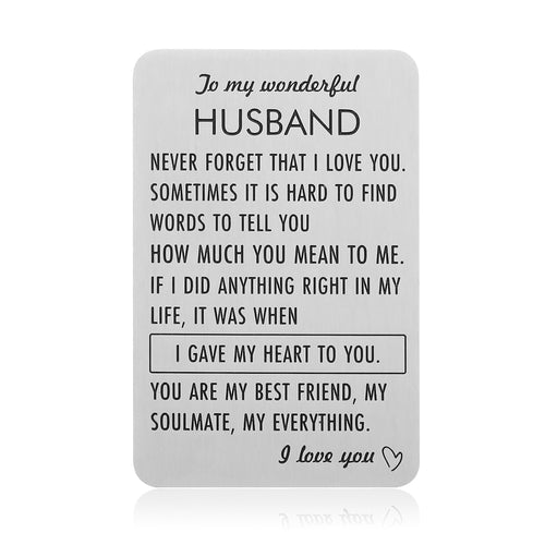Engraved Wallet Insert Card Anniversary Gifts for Husband Boyfriend Groom Fiance Birthday Wedding Valentines Gift from Wife Girlfriend