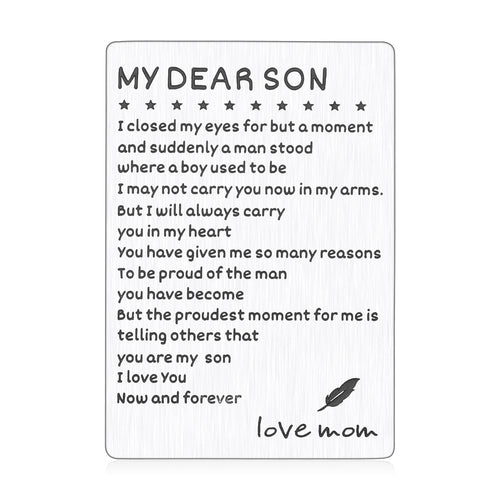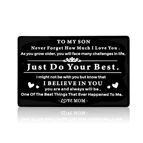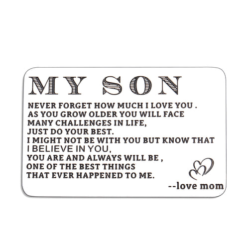 Engraved Wallet Card for Son from Mom Inspirational Christmas Birthday Graduation Gifts to Stepson Adopt Son Metal Wallet Insert Present Meaningful Back-to-School Gift Ideas for Him Boy Men