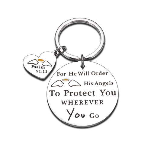 Inspirational Bible Verse Keychain Religious Faith Christian Gifts for Women Men Blessing Prayer Gods Grace Keyring Christmas Thanksgiving Birthday Gifts for Him Her Girls Boys Psalms 91:11 Scripture