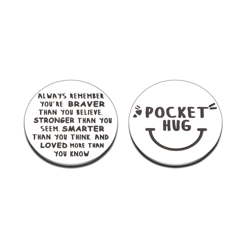 Pocket Hug Token Keepsake Inspiration Birthday for Daughter Son You are Braver Than You Believe Token Long Distance Relationship Gift Miss You Note Double-Sided for Women Men Him Her Boys Girls
