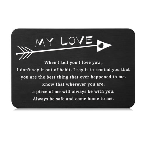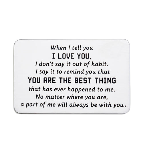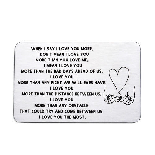 Valentines Gifts Husband Wife I Love You Engraved Wallet Card Insert for Boyfriend Girlfriend Men Women Christmas Anniversary Birthday Wedding for him Romantic Gifts Stocking Stuffers